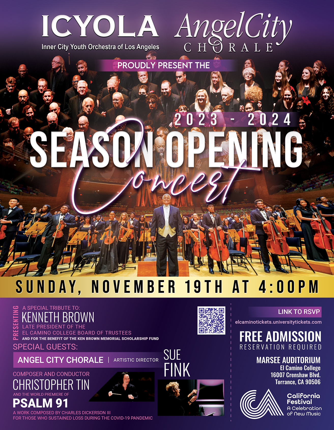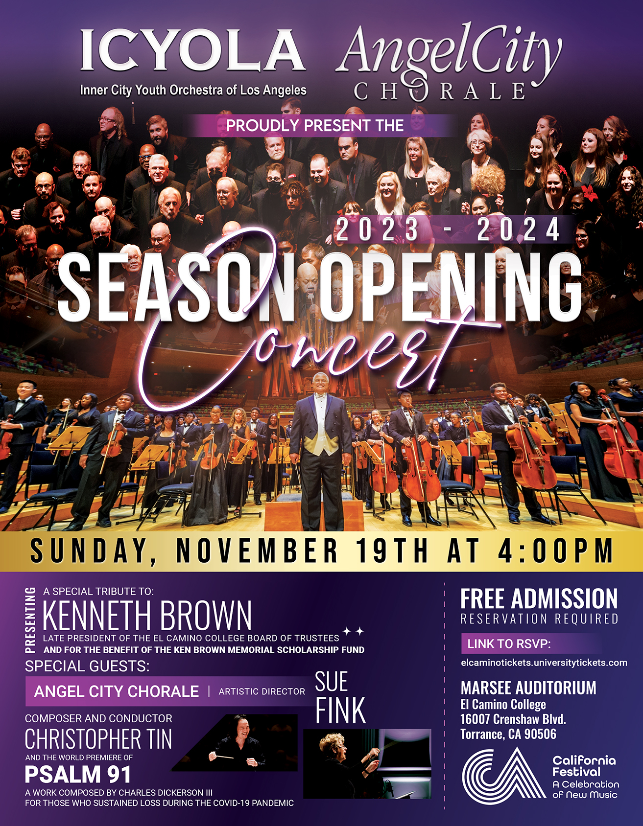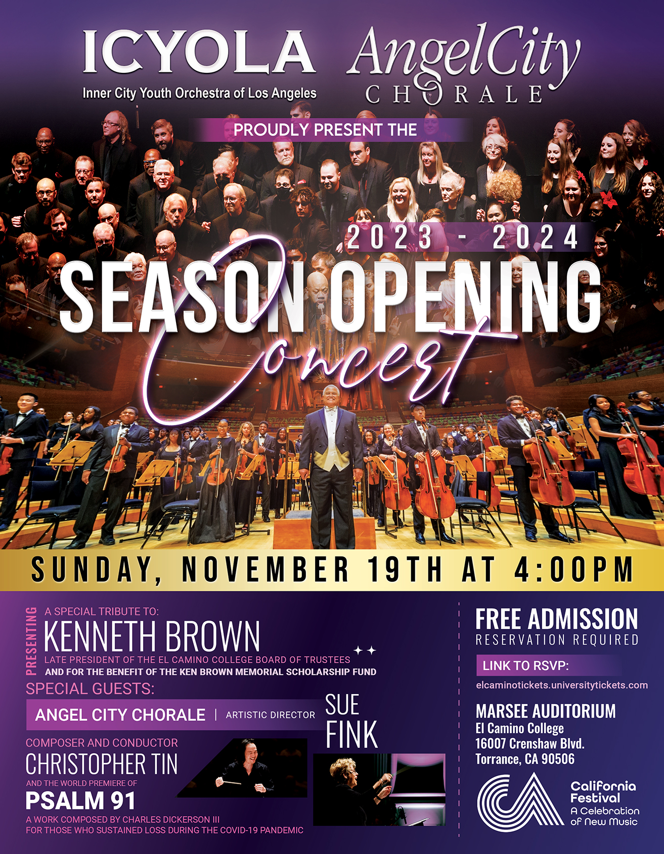Branding and Media created for the Inner City Youth Orchestra of Los Angeles and the Angel City Chorale‘s concert on November 19th, 2023. This performance was a part of California Festival: A Celebration of New Music
